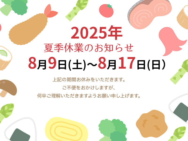 「夏季休暇」のお知らせをいたします。